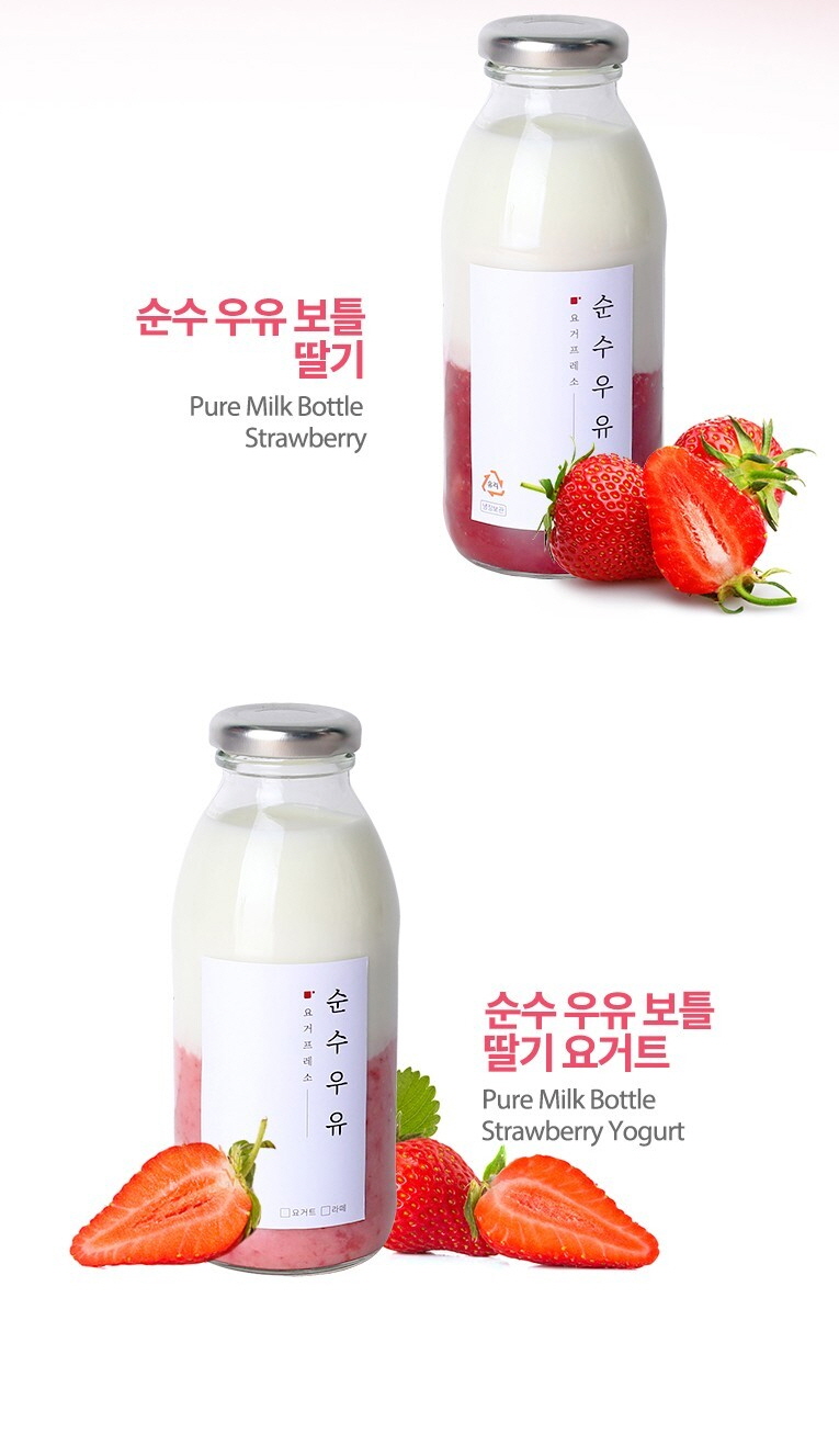 ▷ 순수 우유 보틀 딸기 / 보틀안에 고소한 우유와 딸기 과육을 담아 부드러운 딸기우유를 즐길 수 있다고 합니다.