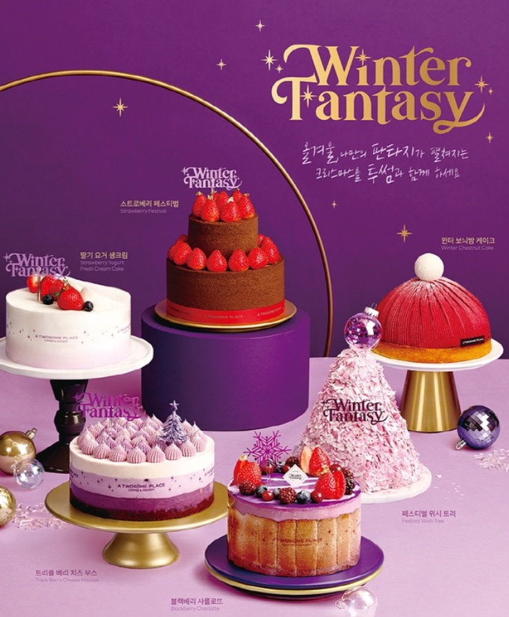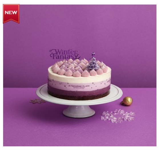 퍼플 컬러의 마블 글레이즈로 크리스마스의 신비로움을 표현한 시즌 대표 케이크라고 합니다.