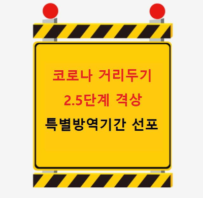 오늘 오후 수도권 내 코로나 사회적 거리두기 2.5단계로 상승하였습니다.