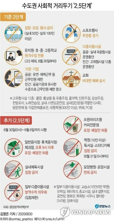 수도권내에 사회적 거리두기 2.5단계로 상승됨에 따라 달라지는 방역 조치 등 시설 이용 방법을 정리해서 알려드릴께요.