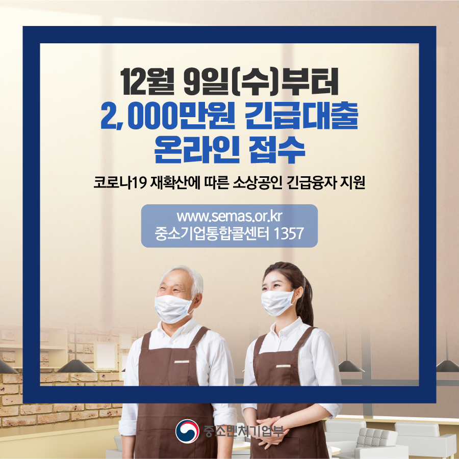 중소벤처기업부는 3천억원 규모의 '2000만원 긴급대출'을 신설해 소상공인시장진흥공단(소진공)에서 지원한다고 밝혔다고 해요.