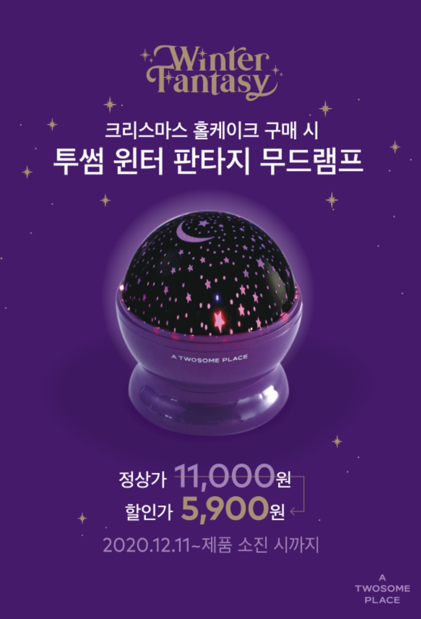 크리스마스 홀케이크 구매시 윈터 판타지 무드램프를 11,000원 → 5,900원으로 구매가 가능하다고 합니다~^^
