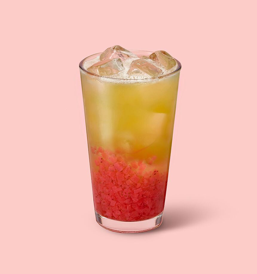 딸기 전체 색감을 강조한 음료로 달콤하고 상큼한 딸기를 티로 만들어 깔끔하게 즐길수 있는 음료.