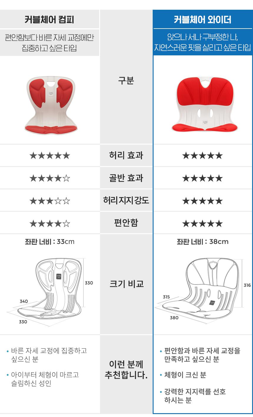 ■ 나는 어떤 커블체어를 사야할까? 커블체어 컴피 VS 커블체어 와이더 비교