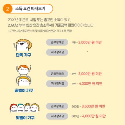 -2020년에 본인과 배우자의 소득이 근로소득만 있어야 합니다.