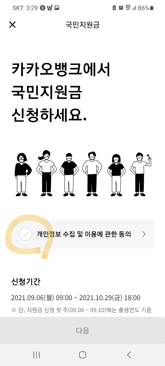 카카오뱅크를 통해 국민지원금 신청하면 정말 5분도 걸리지 않고 빠르게 신청이 가능합니다.
