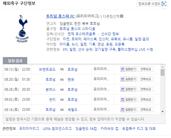 토트넘 손흥민 EPL 실시간 중계 무료 시청